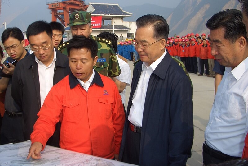 溫家寶同志赴紫坪鋪水利樞紐工程察看災(zāi)情,指導(dǎo)抗震救災(zāi)工作